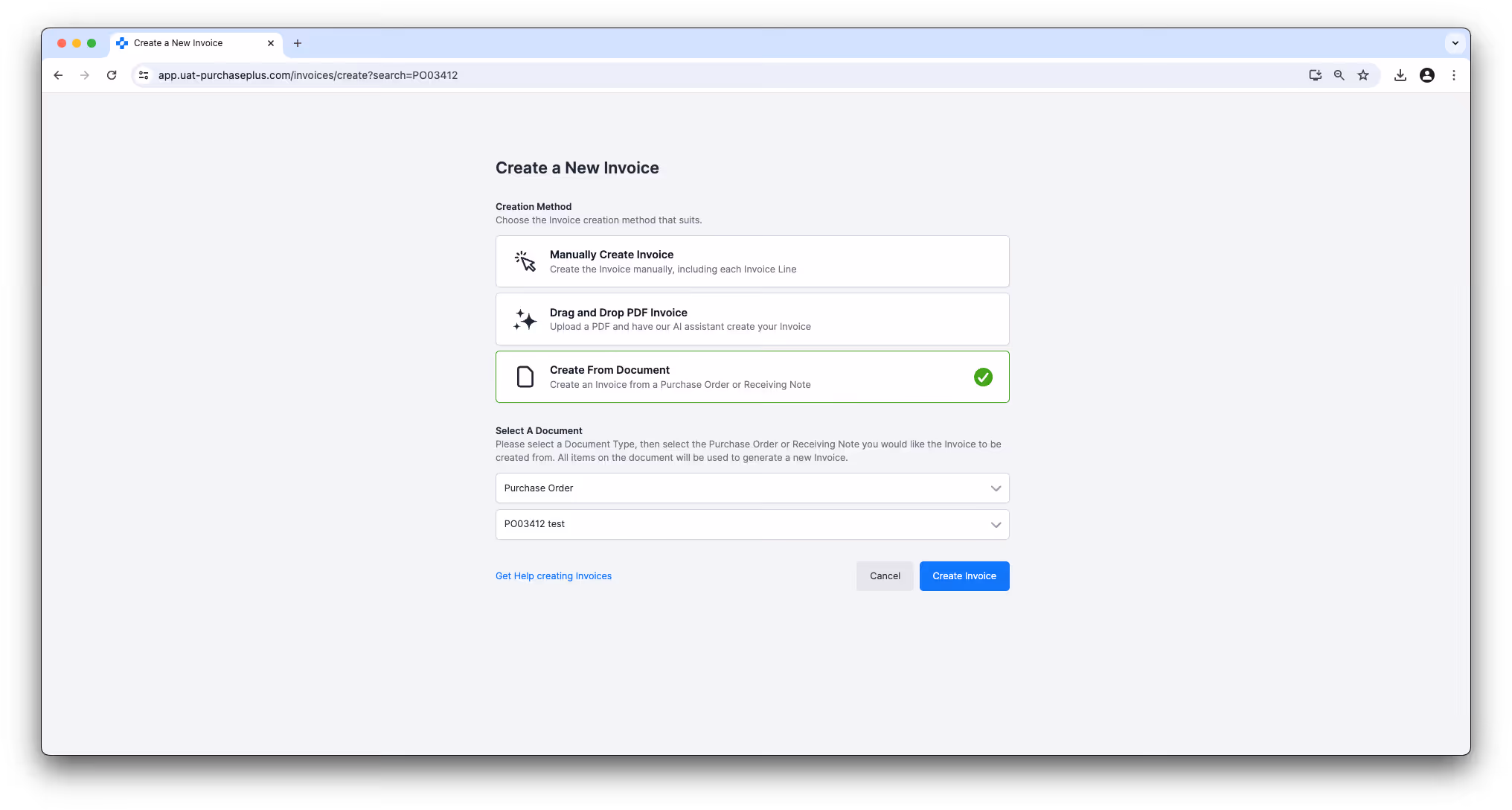 Create an Invoice from a Purchase Order or Goods Receiving Note