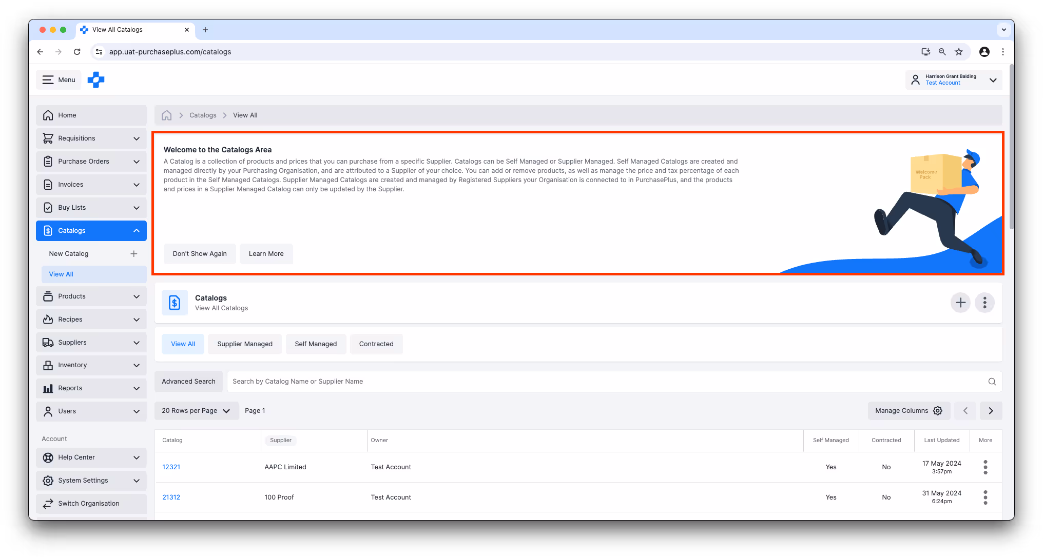 let us know!Additionally, new ‘Welcome’ messages have also been added to important areas in PurchasePlus, introducing features and functionality to new users. Once these messages are dismissed, they will not be displayed again.