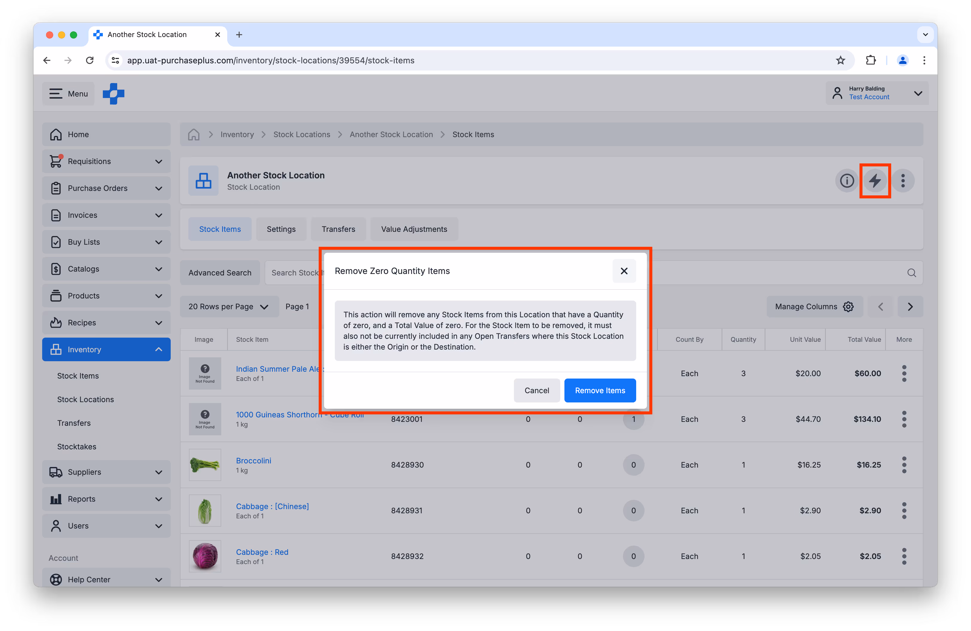 Above: Clearing zero quantity Stock Items from a Stock Location.