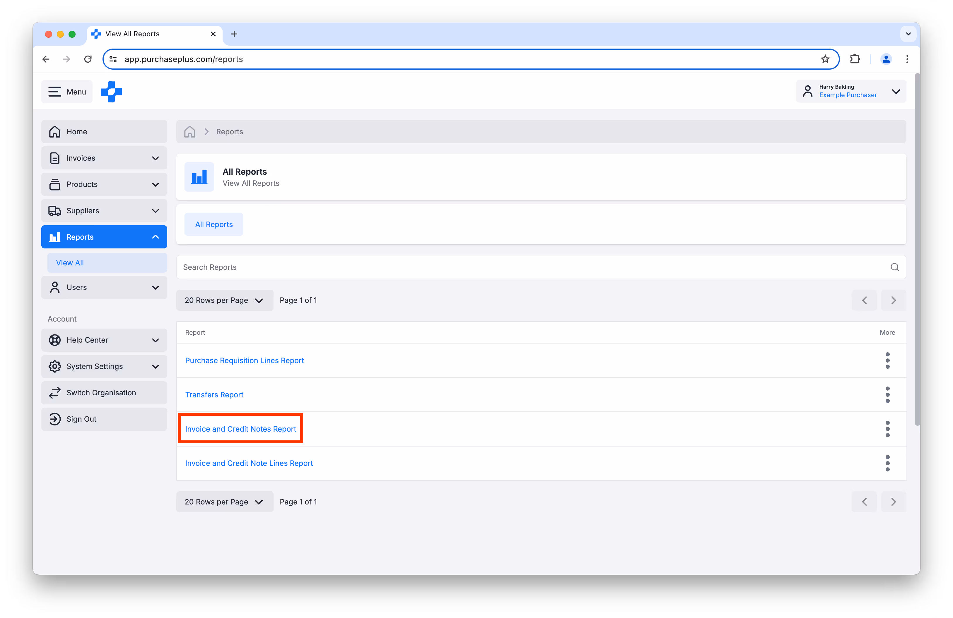 - Invoice and Credit Notes Report. This report displays the Header-level Information (e.g. Supplier, Total Amount, Account/Department etc) on your Organisation's Invoices or Credit Notes.